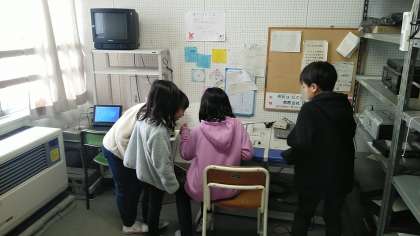 学校に残っている4年生。いつもは、5・6年生の委員会の人がやっているお昼の放送をかわりにしてくれています。4年生、がんばっています。