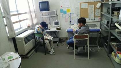 いつもは委員会の人が読書タイムの音楽をかけています。今日は、4年生が放送の音楽がかけながら、放送室で読書タイムをしていました。4年生、がんばっています。