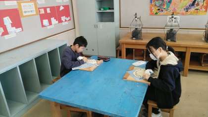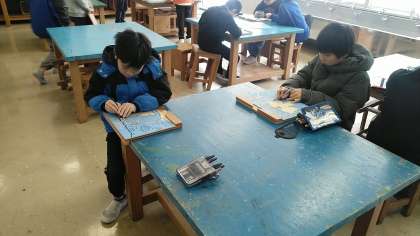 1月25日(木) 5年生 今日の授業風景(木版画)