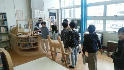 3年生は、図書ラウンジで今日も本を選んで借りていました。「この本、おもしろいよ」「この本、読んだことある?」など、いろいろな本を教えてくれました。