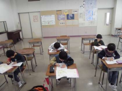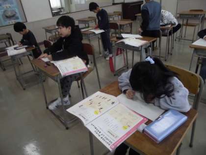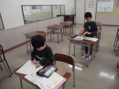 1年生の2時間目は、音楽の学習でした。わらべうた「さんちゃんが」は、絵描き歌です。子供たちは、「さんちゃんが」を口ずさみながら、歌に合わせて上手に絵を描いていました。