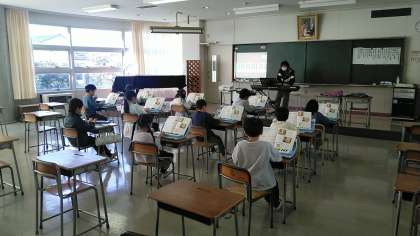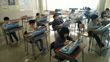 3年生の4時間目は、音楽科の学習でした。鍵盤ハーモニカで「こぎつね」という曲を演奏していました。いろいろな速さで楽しく演奏していました。