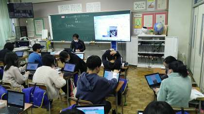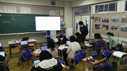 6年生は、4時間目にクロームブックでスライドをつくっていました。学校行事等の思い出を選んで言葉にしていました。