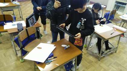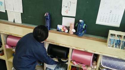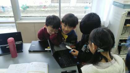 2年生の1時間目は、図画工作科の学習でした。「目を付けると…」という学習で、自分のいろいろな持ち物に目を付けたら、どんな言葉を言うだろうということを考えて、吹き出しにしていました。完成した目と吹き出しの付いた持ち物は、クロームブックを使って撮影していました。