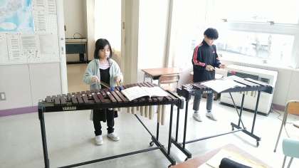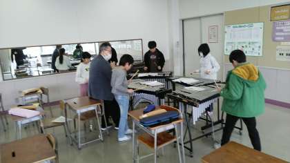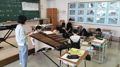 4年生の4時間目は、音楽科の学習でした。音楽室で茶色の小瓶の演奏の練習をしていました。