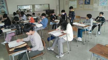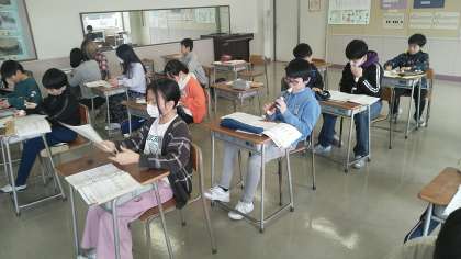 5年生の5時間目は、音楽科の学習でした。リコーダーを使って曲づくりをしていました。