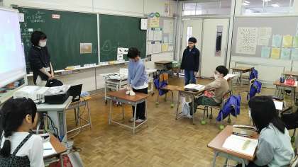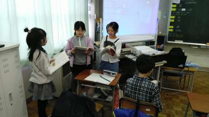 3年生の2時間目は、国語科の学習でした。「ありの行列」という説明文の内容を実際にやってみたり、グループごとに音読したりしていました。