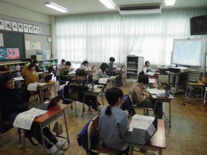 3年生の3時間目は、社会科の学習でした。教科書のイラストを参考に、昔と今の暮らしの違いを見付け、意見交換したりスプレッドシートにまとめたりしていました。