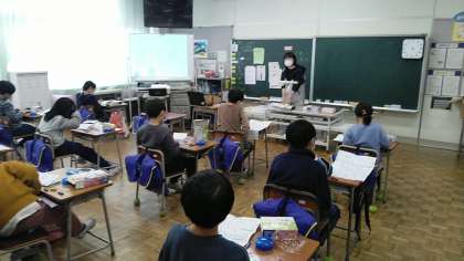 2年生の5時間目は、国語科の学習でした。絵を見ながら様子を表す言葉を使って文を書いていました。