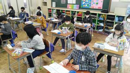 3年生の5時間目は、理科の学習でした。磁石の「しりぞけ合う」「引き合う」性質について考えていました。