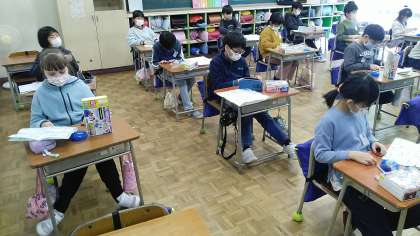 2月6日(火) 3年生 今日の授業風景(しりぞけ合う)