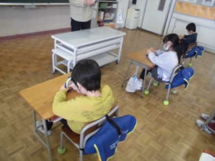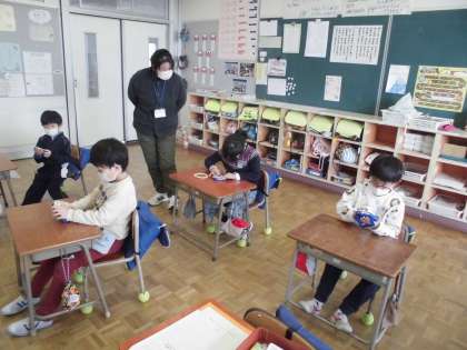 1年生の5時間目は、算数の学習でした。算数ボックスの中にある時計を使って「何時何分」を確かめています。生活していく中で欠かせない時間の読み取りに、子供たちも張り切って学習しています。