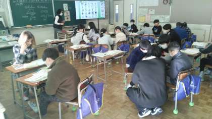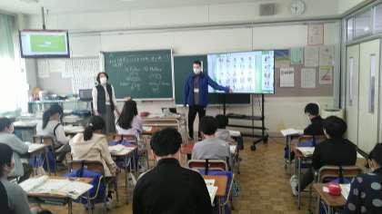5年生の2時間目は、外国語科の学習でした。なりたい職業について英語で言う練習をしていました。