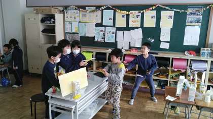 2年生の2時間目は、生活科の学習でした。1年生を招待してつくったおもちゃやゲーム等を紹介していました。