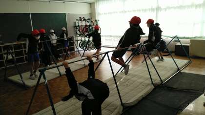 3年生の2時間目は、体育科の学習でした。鉄棒をしていました。くるくるまわってました。