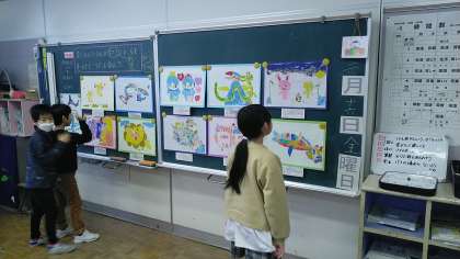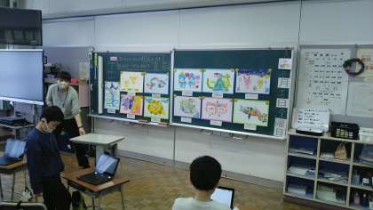 2年生は、2時間目に図画工作科の学習をしていました。版画でつくった作品の鑑賞をしていました。友達の取組のよさを見付けてクロームブックのジャムボードに書き込んでいました。