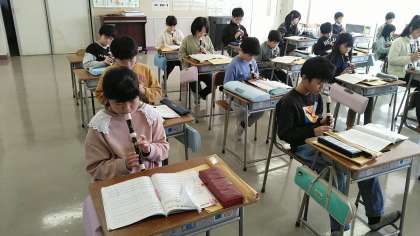 4年生の4時間目は、音楽科の学習でした。音楽室でリコーダーの練習をしているところでした。