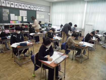 3年生の4時間目は、算数の学習でした。コンパスで円を描き、その円を使うと三角形が描ける理由を考えていました。中心・半径等、円に関する言葉を使って分かりやすくノートにまとめていました。