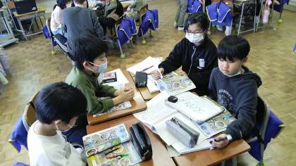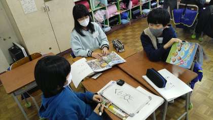 3年生の4時間目は、外国語活動の時間でした。写真を見て、「これは何?」のクイズの答えをグループで考えていました。