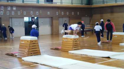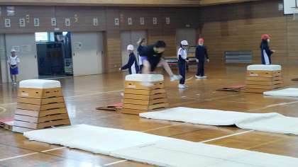 5年生の5時間目は、体育科の学習でした。体育館でとび箱を跳んでいました。