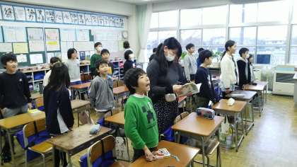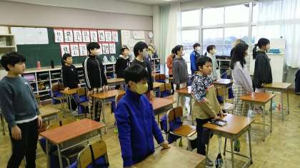 今日は、創校記念日なので朝の歌も全校が各教室で「創校記念日の歌」を歌いました。