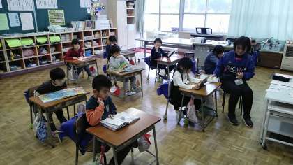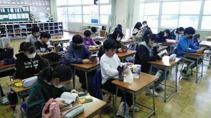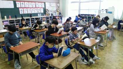 今日の読書タイムは、6年生教室と5年生教室と1年生教室の様子です。