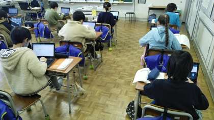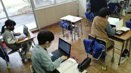 3年生の1時間目は、国語科の学習でした。ローマ字の学習をしていました。クロームブックをローマ字入力で使う練習をしていました。