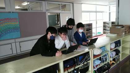 給食の前に委員会活動をしている人たちがいました。挨拶のすてきな人について話し合っていました。