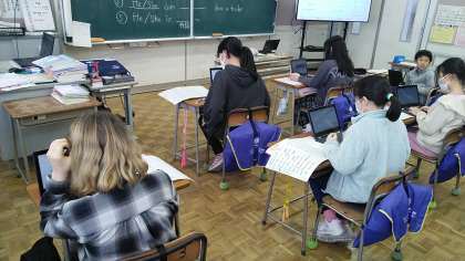 5年生の2時間目は、外国語科の学習でした。マイヒーローを紹介する文章を考えていました。お父さんやおじいちゃんがヒーローみたいです。