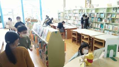 図書ラウンジを覗くと、今日も3年生が借りる本を選んでいました。3年生は、読書が大好きな学年です。