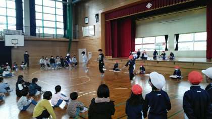 1年生は、ダンス、2年生は、6年生が2年生のときのクイズ、3年生は、6年生と一緒に赤団と白団の対決の発表でした。