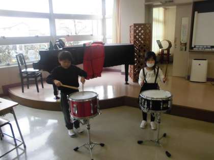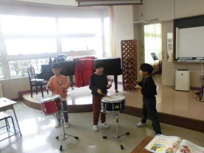 1年生の1時間目は、音楽の学習でした。「行進曲」のリズムに合わせて、様々な楽器を演奏しました。体を動かしながら、友達と楽しく取り組んでいました。