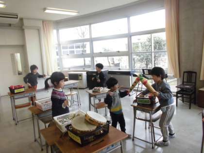3月5日(火)1年生 今日の授業風景(楽器をたくさん使って)