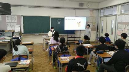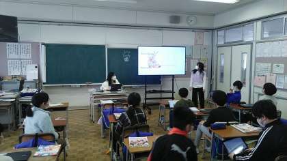 5年生の2時間目は、外国語科の学習でした。マイヒーローについて、プレゼンをつくってみんなに説明していました。