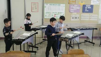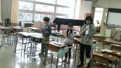 2年生の4時間目は、音楽科の学習でした。今日も音楽室で「アイアイ」の合奏をしていました。ずいぶん上手に演奏できるようになっていました。