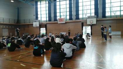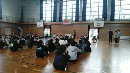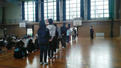 お昼休みに体育館で児童会引き継ぎ式がありました。