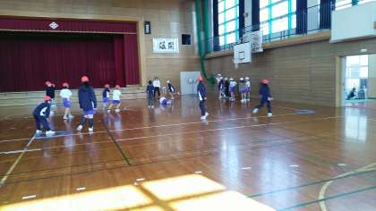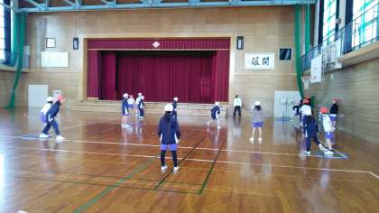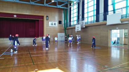 4年生の2時間目は、体育科の学習でした。体育館でティーボールをしていました。