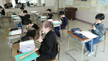 3年生の2時間目は、音楽科の学習でした。リコーダーで「エーデルワイス」を演奏していました。