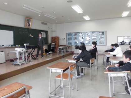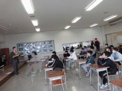 4月から音楽の授業をしてくださった川添先生が、今日で四方小学校最終日ということで、ホルンの演奏をしてくださいました。ホルンの生の音色を味わえた子供たちです。