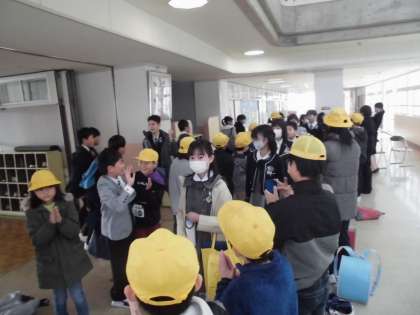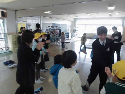 卒業式の後、コモンスペースで歓送の会を行いました。卒業生代表の挨拶の中に「僕たちのためにいろいろなことを言ってくれてありがとう」「これからも頑張ります」という言葉があり、本当に心温かい卒業生たちでした。在校生がつくった花道を通る卒業生は、とても晴れやかな表情をしていて、後輩たちに「元気でね」「またね」等、温かい声をかけてくれました。胸を張って、中学校へ進学してください。本当におめでとう。