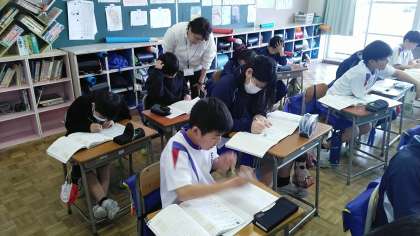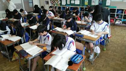 4年生の5時間目は、算数科の学習でした。でも、4年生教室には、外国語活動のALTのジョン先生が…。今日が最後の勤務日となるジョン先生が算数科でも子供たちに教えてくれていました