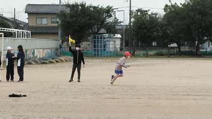 5年生の5時間目は、体育科の学習でした。グラウンドで50メートル走のタイムを計っていました。