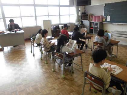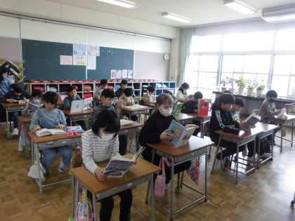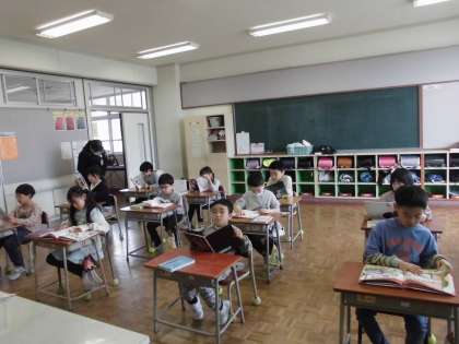今年度も、掃除後に読書タイムを設けました。じっくりと読書をする四方っ子です。