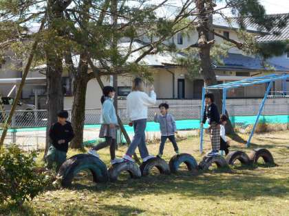 たくさんの四方っ子がグラウンドに出て、思い思いの遊びを楽しんでいました。