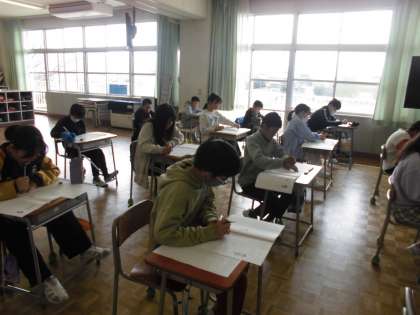 4・5・6年生の2時間目は、県学力調査(算数)をしていました。諦めず、一つ一つ丁寧に解答していました。