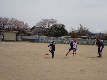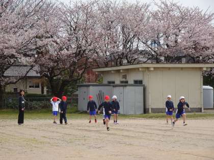3年生は、きれいに咲き誇る桜をバックに力一杯走っていました。ゴールを全力で走り抜けます。