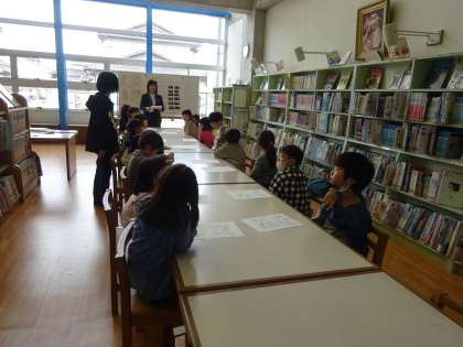 1年生は学校司書の先生と図書ラウンジの使い方について学習しました。静かに過ごすこと、本を大切に使うこと等の約束を真剣に聞いていました。たくさんの本にワクワクした様子の子供たちでした。