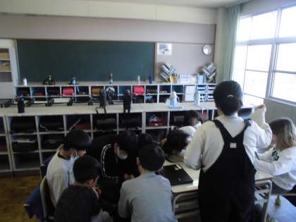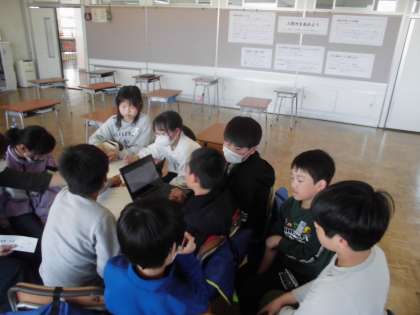 6年生の6時間は、総合的な学習の時間でした。色団に分かれて、スローガンや応援歌等の案を考えていました。