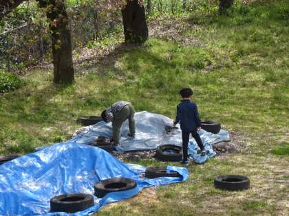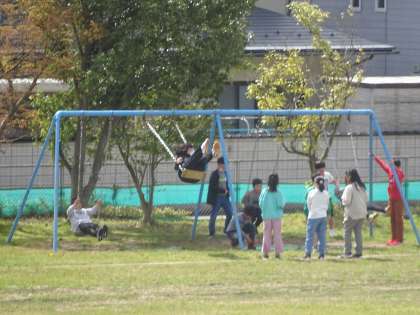 気持ちのよい青空の下、元気に走り回ったり、遊具で仲良く遊んだり、虫探しに没頭したりと、どの子も楽しく過ごしてます。