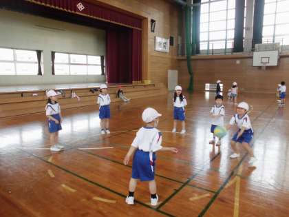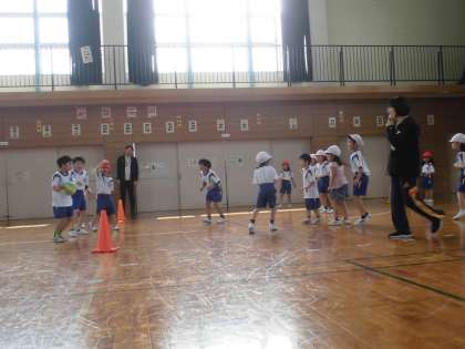 4月19日(金)1、2年生 今日の授業風景(ボールと仲よし)